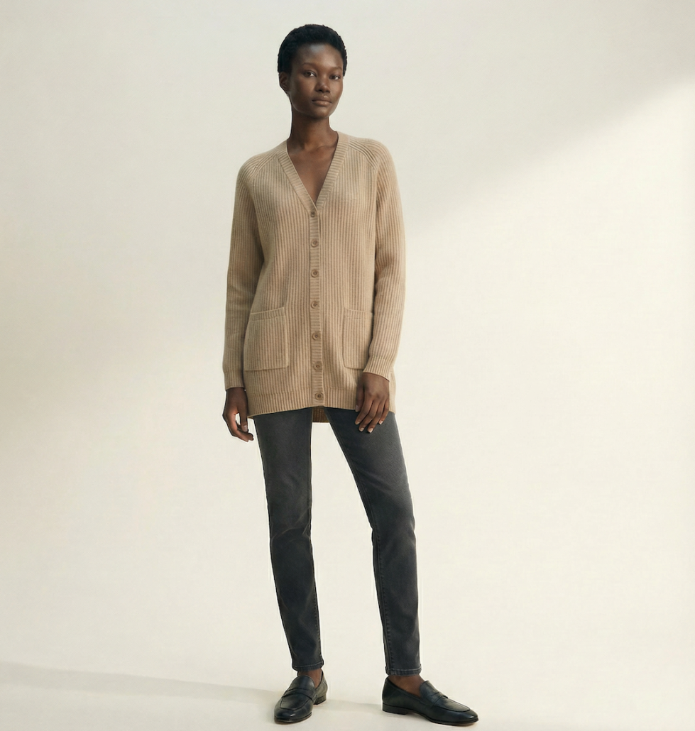 Cardigan Dulce de leche, wurde aus 100 % Baby Alpaka gefertigt.