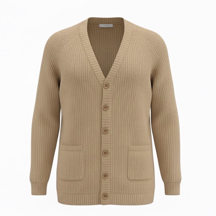 breiten Rippstrick-Enden und cocosschalen früchten gemachten Knöpfen abgerundet.