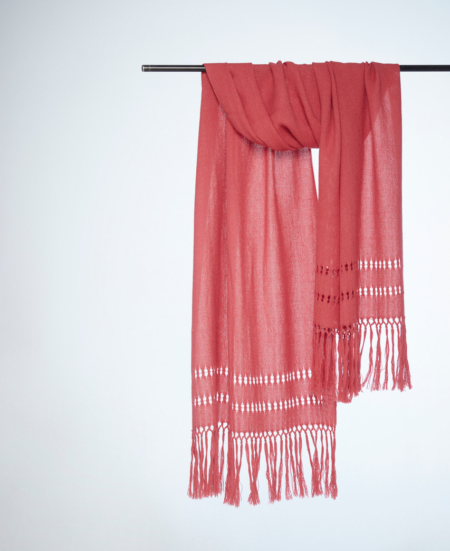 Saum mit eingestricktem Lochmuster und langen Fransen